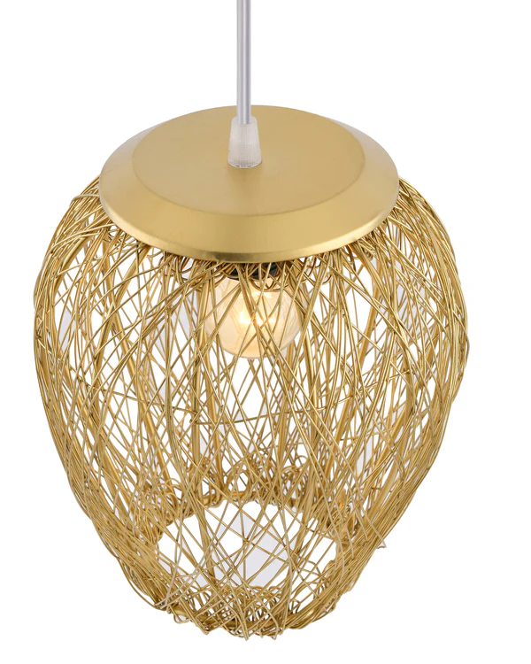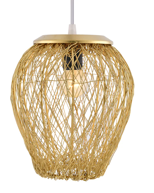 Add a touch of modern luxury and artistic charm to your interiors with this Golden Wire Pendant Hanging Light. Designed with an intricate open-wire metal frame, this pendant lamp beautifully diffuses light, creating stunning shadow patterns and a warm, inviting ambiance.