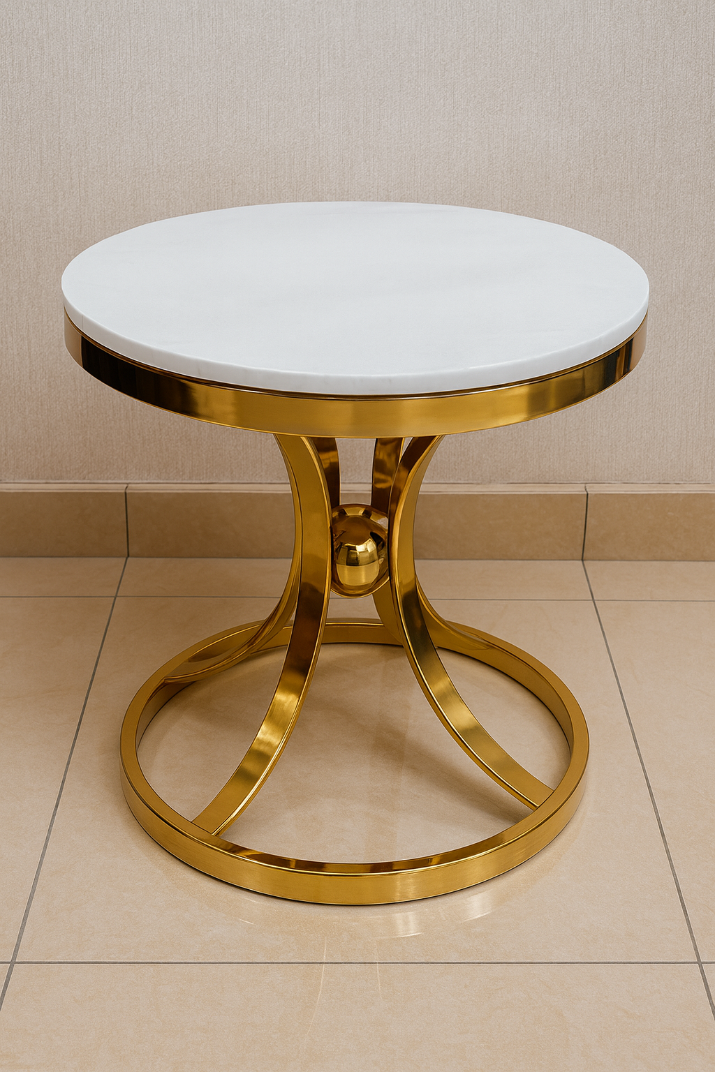 Elegant Design: Features a smooth high-gloss marble top paired with a premium gold-plated steel base.